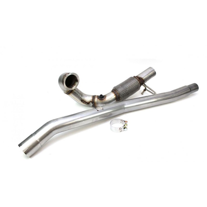 Esta downpipe Racingline Performance se instala sin ninguna modificación con el objetivo de suprimir el catalizador de serie en los motores 2.0T Ea888.3 de los Golf 7 R / Audi S3 8V / TTS 8S. Fabricado a partir de tubos de acero inoxidable con un diámetro de 3" / 76mm, esta downpipe está equipada con un reductor para su instalación en el escape de serie !