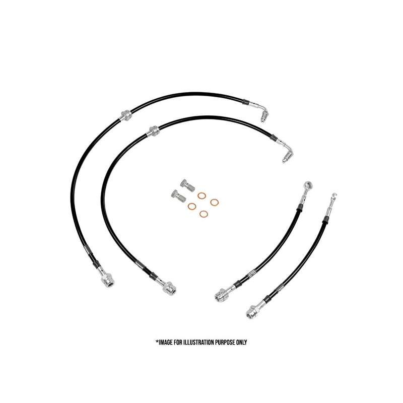 Con un coeficiente de dilatacion mucho menor que el de serie, este kit de 4 latiguillos metalicos de Goodridge permite disfrutar de una potencia y una resistancia del sistema de freno optimal en carretera como en pista ! Llevando los latiguillos delanteros y traseros, este kit disponible en 4 colores incluye el kit de montaje completo y sé instala sin modificación!