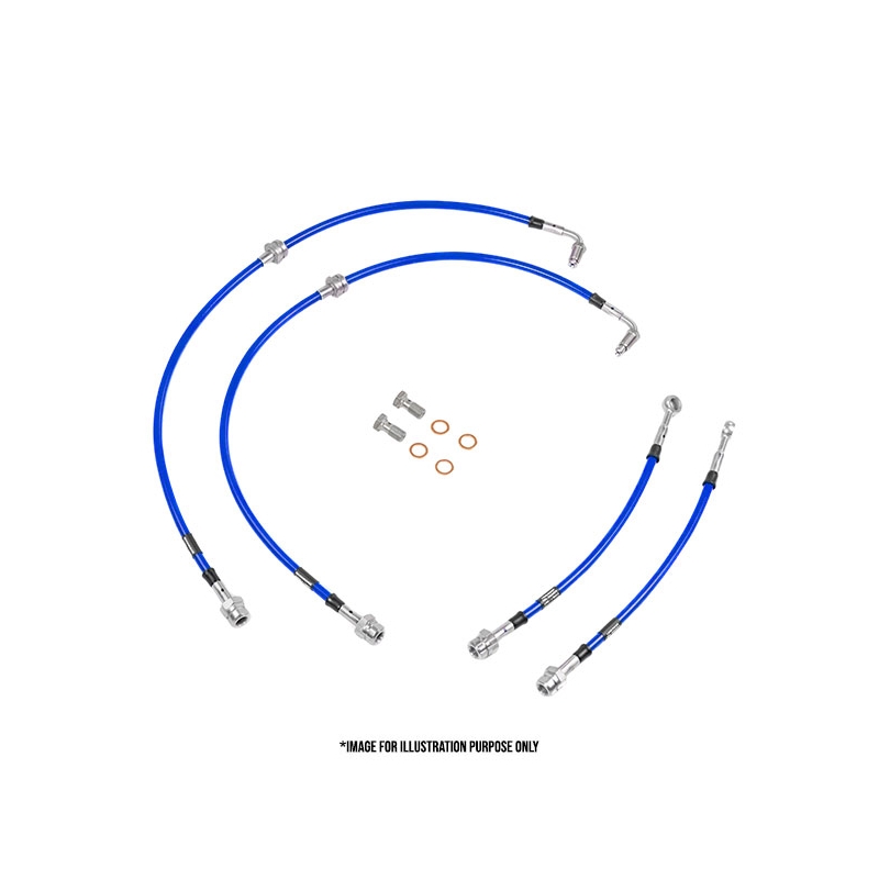 Con un coeficiente de dilatacion mucho menor que el de serie, este kit de 4 latiguillos metalicos de Goodridge permite disfrutar de una potencia y una resistancia del sistema de freno optimal en carretera como en pista ! Llevando los latiguillos delanteros y traseros, este kit disponible en 4 colores incluye el kit de montaje completo y sé instala sin modificación!