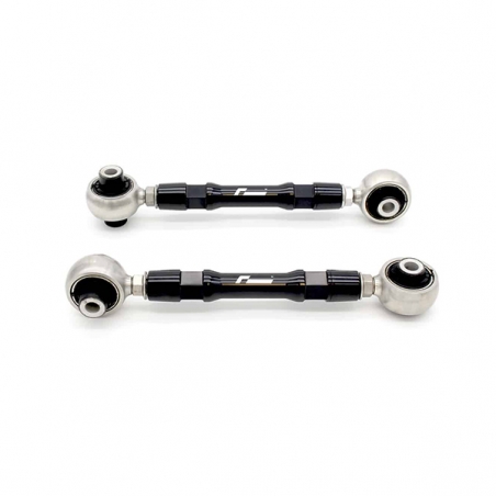 Este kit de tirantes traseros Racingline, destinado a las plataformas MQB del grupo VAG, permite un ajuste óptimo de la apertura trasera de los Golf 7 GTI / Golf 7 R / Leon 3 Cupra / S3 8V / RS3 8V o TTRS 8S. Fabricados en aluminio de alta calidad, estos tirantes o brazos inferiores traseros tienen un sistema de ajuste de doble rosca que permite un ajuste muy preciso. Equipados con silenblocks de alta resistencia, estos tirantes Racingline también endurecerán ligeramente el eje trasero para una mejor capacidad de respuesta en la carretera y en la pista.