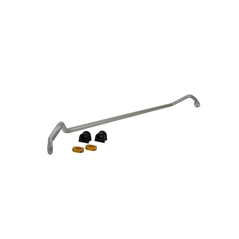 Este kit de barra estabilizadora delantera de mayor diametro Whiteline permite, via 2 posiciones, aumentar la rigidez y reducir el balanceo de la carroceria en curvas. El kit se instala sin modificaciones y lleva los casquillos de poliuretano y el kit de montaje completo !