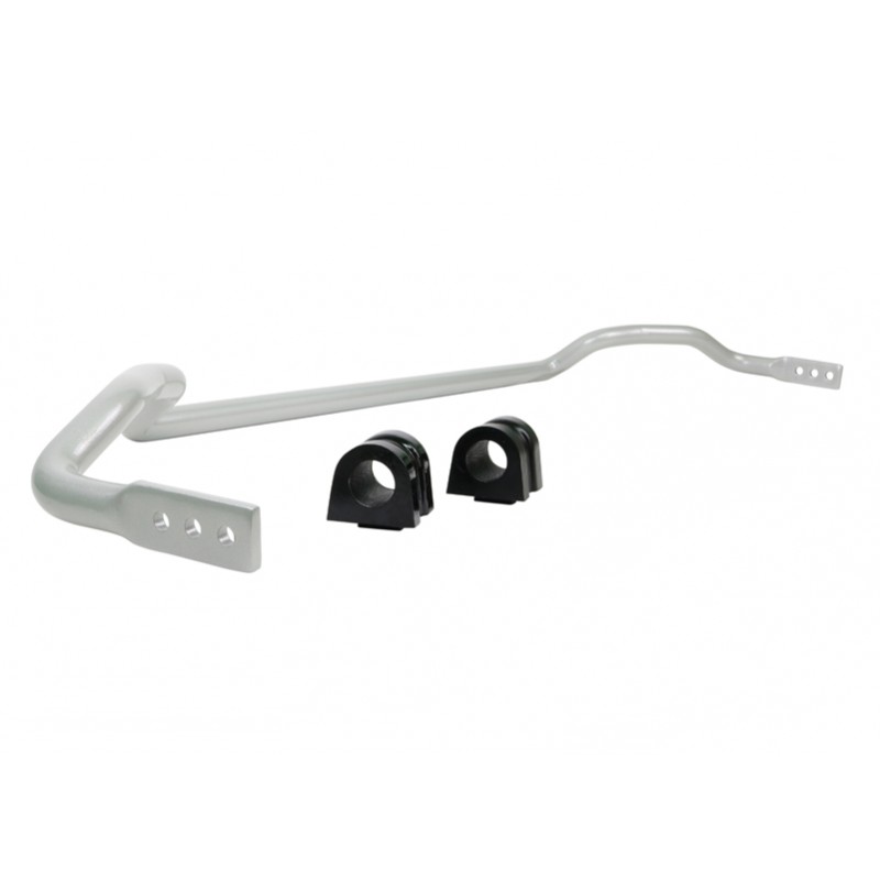 Este kit de barra estabilizadora delantera de mayor diametro Whiteline permite, via 3 posiciones, aumentar la rigidez y reducir el balanceo de la carroceria en curvas. El kit se instala sin modificaciones y lleva los casquillos de poliuretano y el kit de montaje completo !